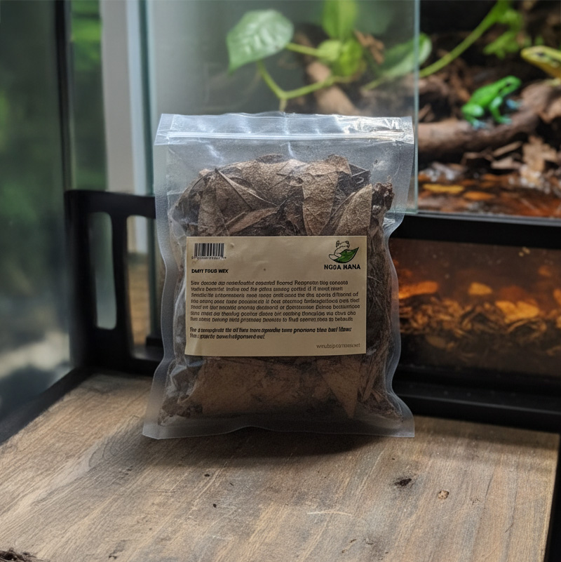 Our leaf mix comes from the same tree species found in Panamanian dart-frog habitat. It supports humidity, shelters microfauna, and encourages natural behaviors and breeding. You can also boit it to make tannin-rich water for tadpoles.